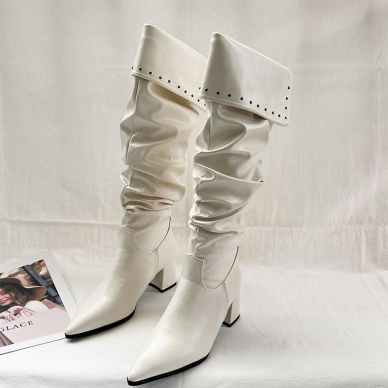 Женские сапоги до колена с острым носком на высоком каблуке, сексуальная обувь, зимняя роскошная массивная кожаная обувь, ботинки челси, элегантные туфли-лодочки для женщин