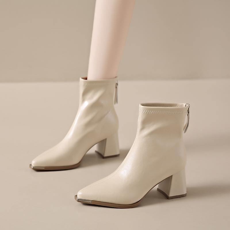 Зимние дизайнерские ботильоны модные молнии сзади острый носок женские элегантные короткие плюшевые короткие ботинки высокий каблук женская обувь