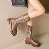 Вышитые Ковбойские Для Женщин Новые Круглый Носок Платформа Сапоги Ретро Классические Западные Ковбойские Модные До середины икры