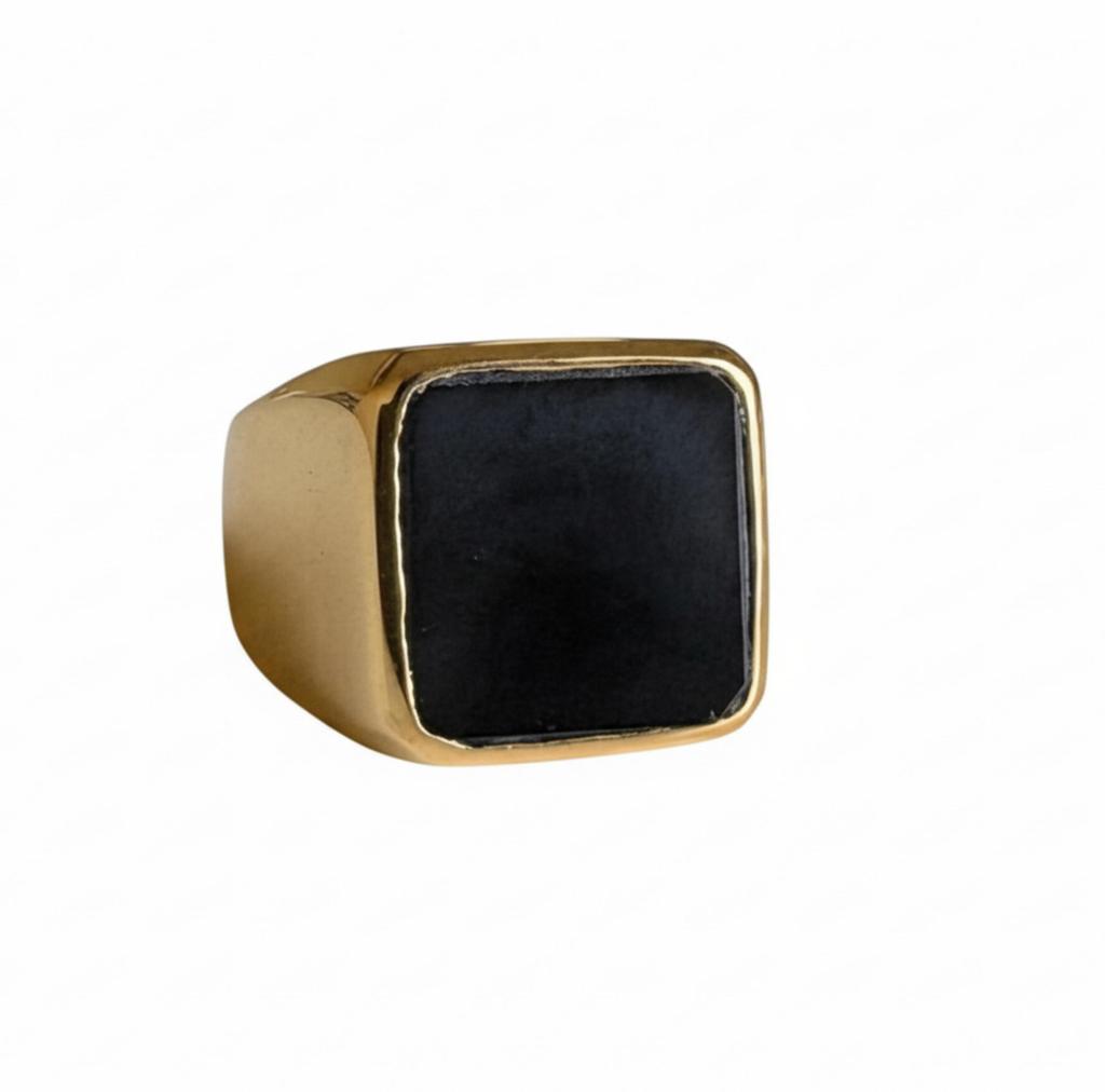 Квадратное кольцо с плоским черным ониксом, 925 проба, цельное стерлинговое серебро, кольцо из чистой меди, мужское кольцо-печатка, украшения ручной работы