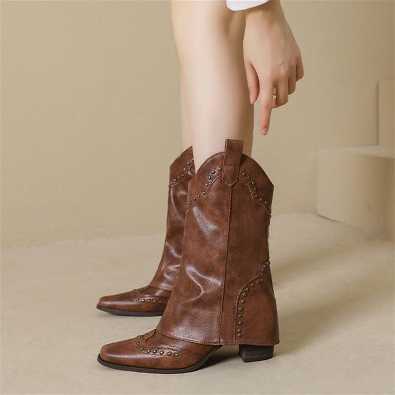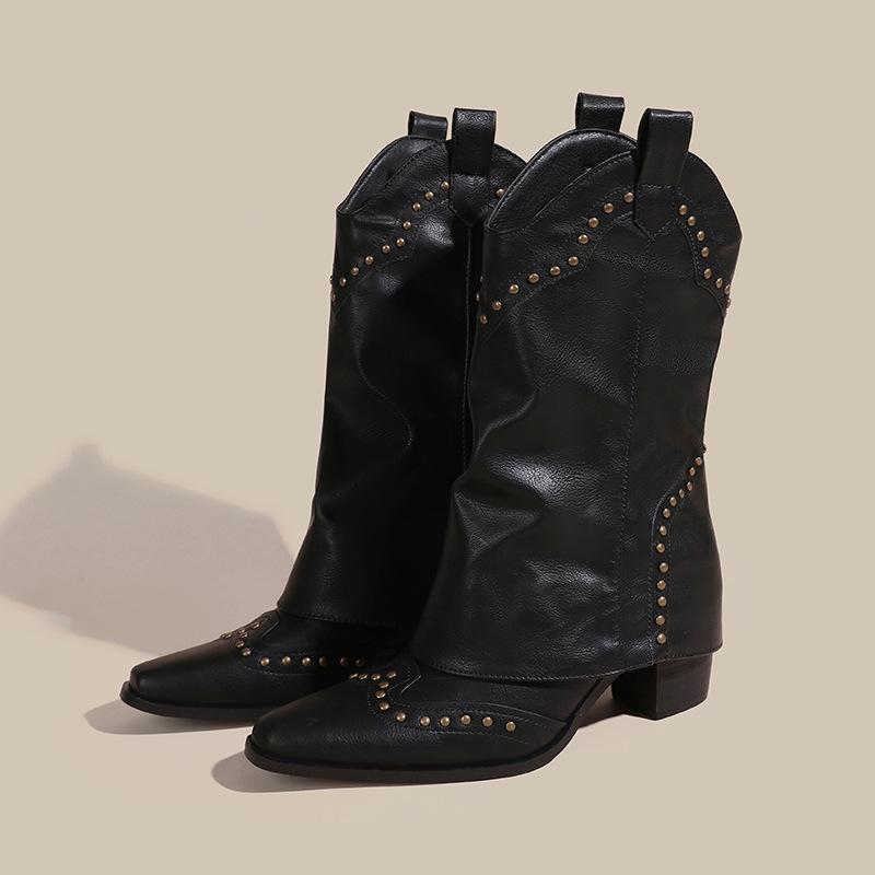 Женские мотоциклетные ботинки с острым носком и отделкой заклепками, на грубом каблуке, женские рыцарские ботинки, ретро, повседневные, однотонные, на платформе