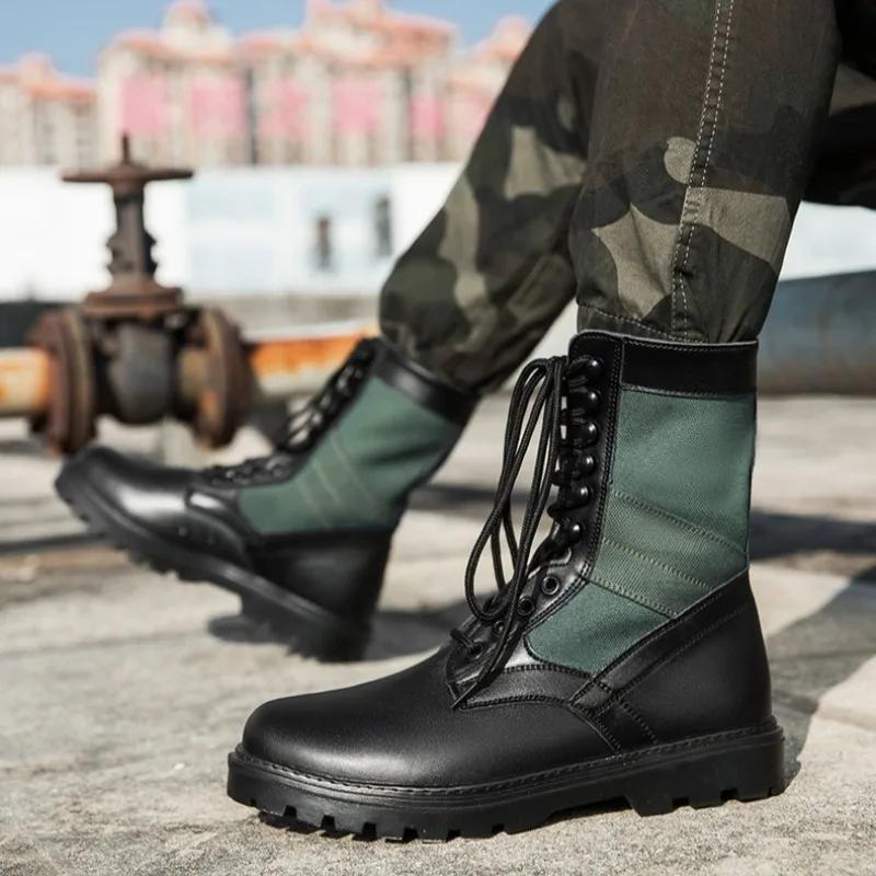 Men'S High-Top Boots High Quality Leather Casual Boots Breathable Canvas Boot Lace Up Desert Ankle Boots Hiking Boot