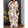 Женский комплект с рукавом три четверти, V-образным вырезом, на пуговицах, с принтом, халат, брюки на кулиске, одежда, распродажа