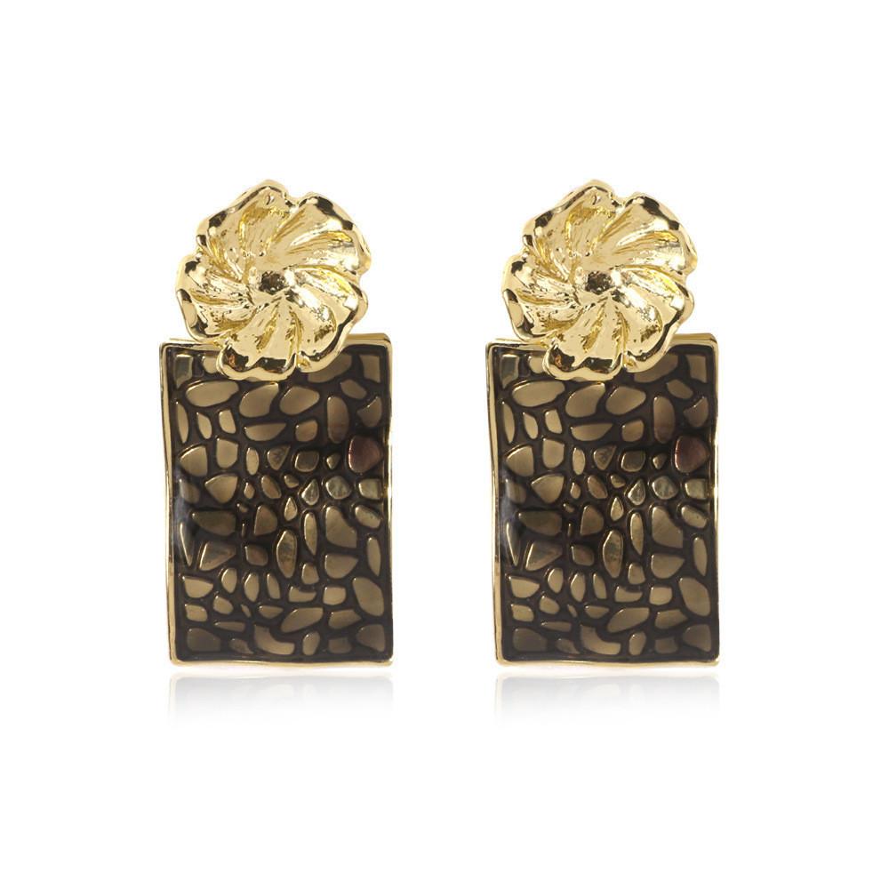 Элегантный дизайн: Эти серьги из сплава с цветочным дизайном имеют изысканную прямоугольную форму с замысловатыми цветочными деталями, идеально подходящую для добавления нотки элегантности к любому наряду.