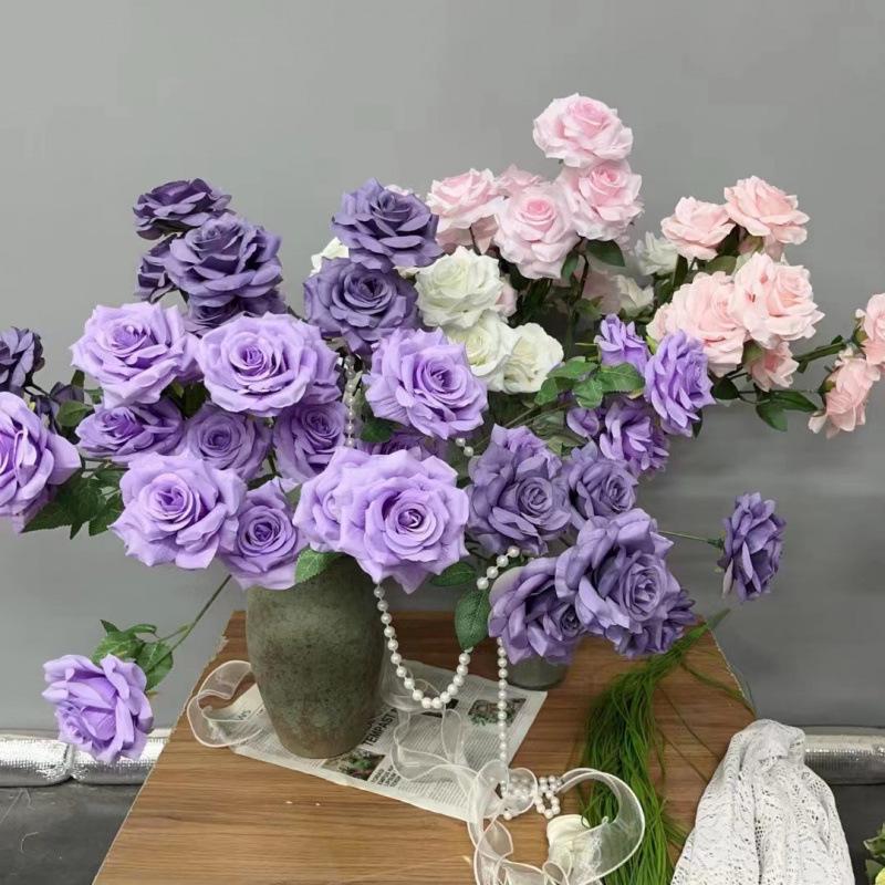 Композиция из искусственных цветов - Симуляция Мультифлоры, Высокий стебель, Фиолетовая роза, Светлые и темные шелковые искусственные цветы