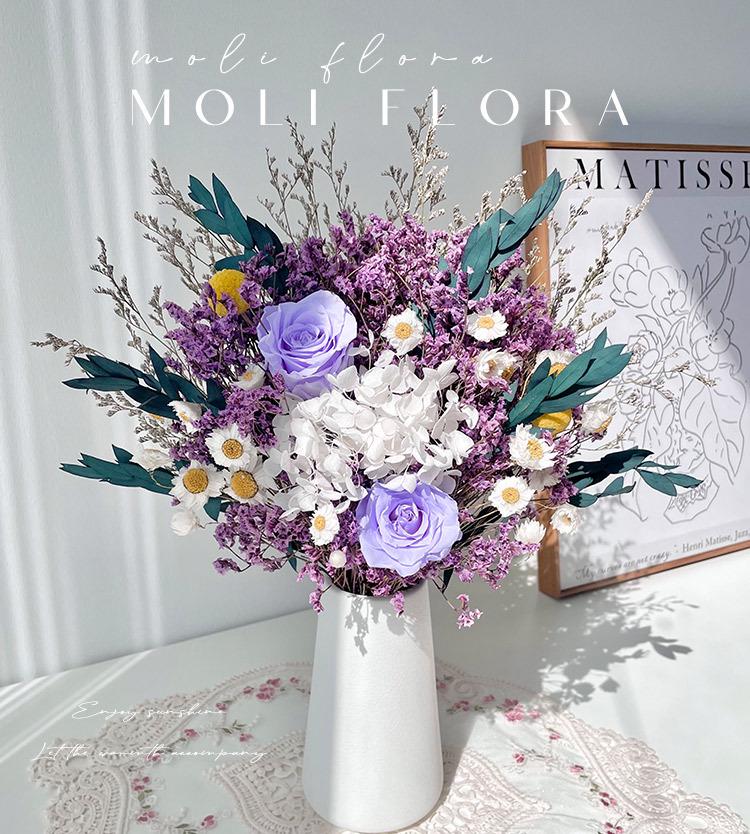 Eternal Rose & Eucalyptus Dried Flower Bouquet - Home Decor with Hydrangea, Baby's Breath & Crystal Grass