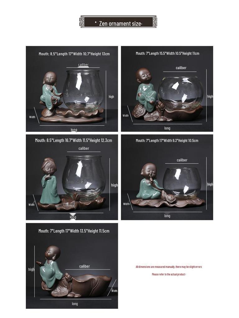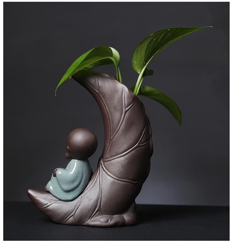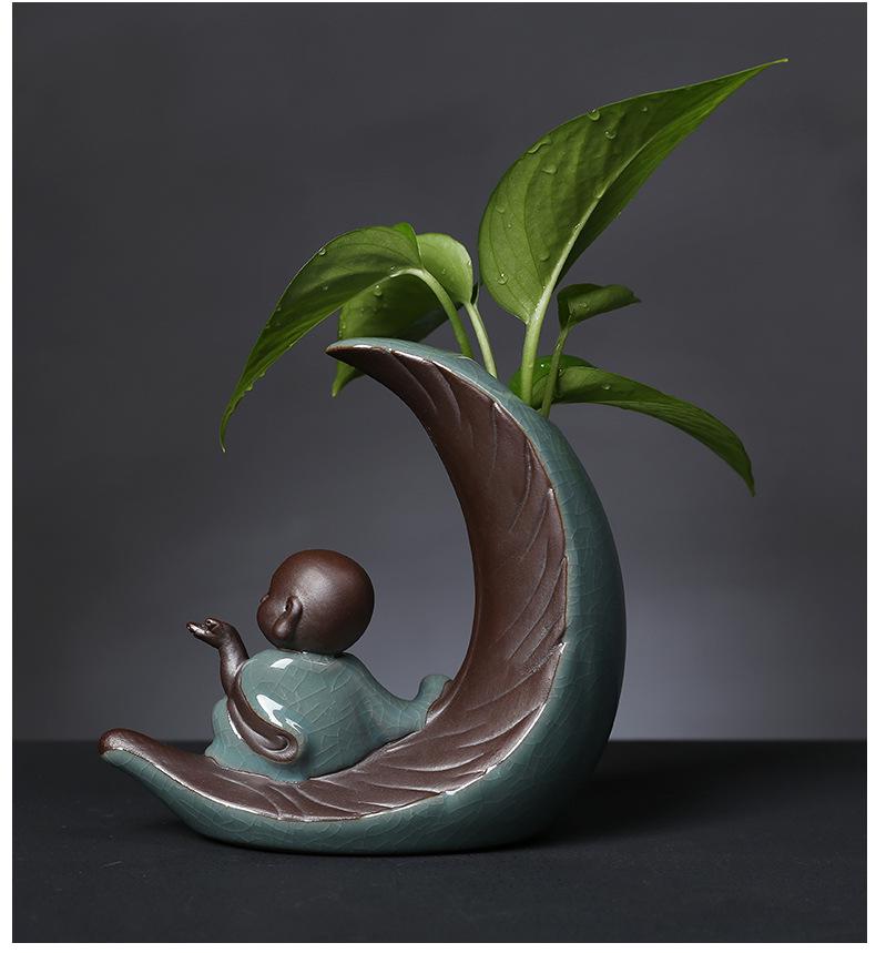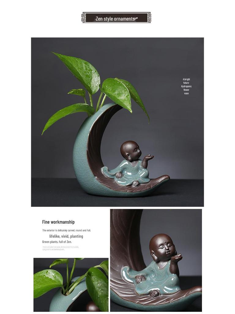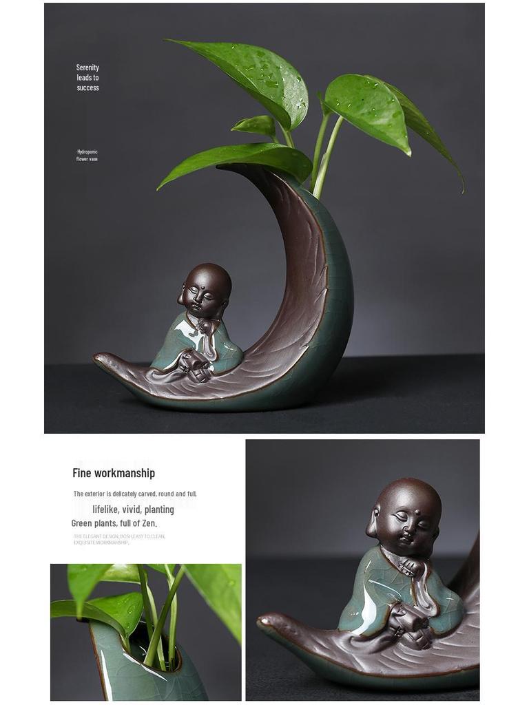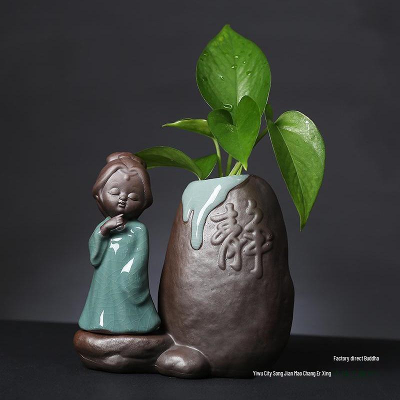 Креативный стеклянный гидропонный цветочный горшок с керамической фигуркой маленького монаха для декора гостиной