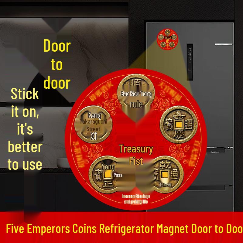 Самоклеящаяся магнитная наклейка «Пять императоров» для богатства на двери