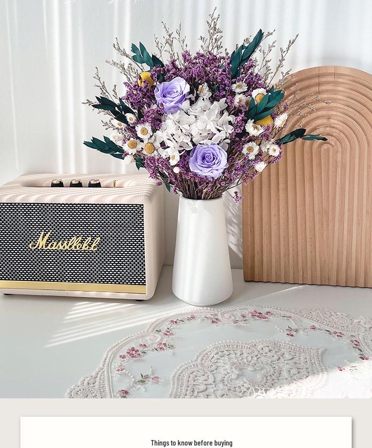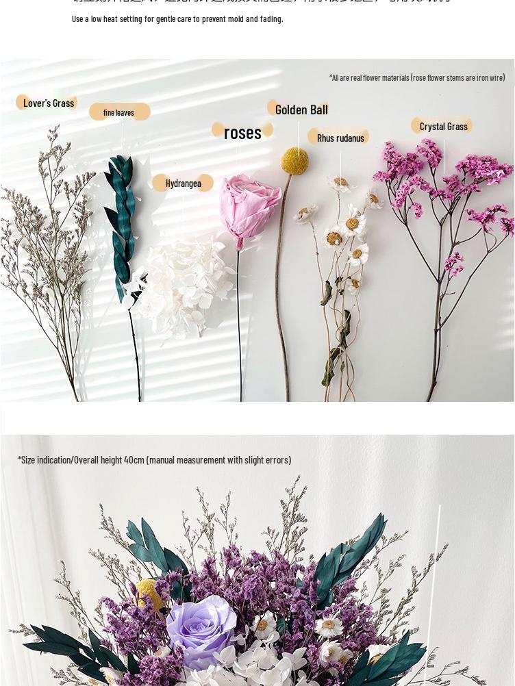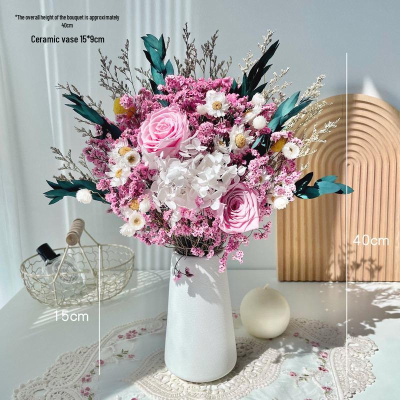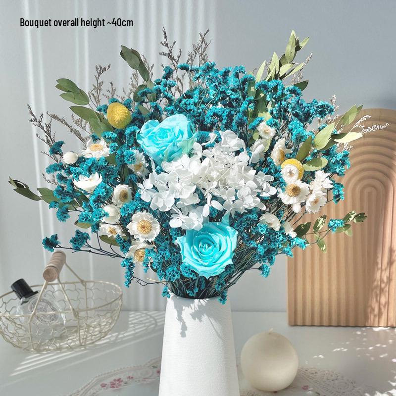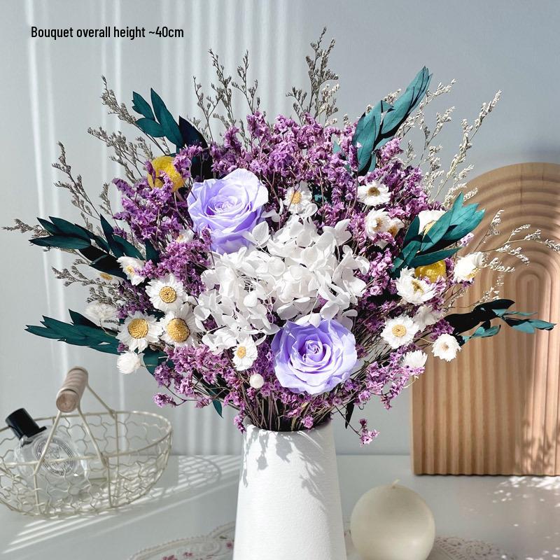 Immortal Rose & Eucalyptus Bouquet: Dried Hydrangea, Baby's Breath, Crystal Grass for Home Decoration & Living Room Arrangement