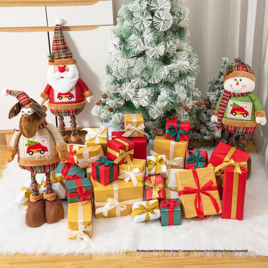 Large Christmas Tree Decoration Set with Snowman, Gift Box, Fence, and Tree Skirt for Shopping Mall Display