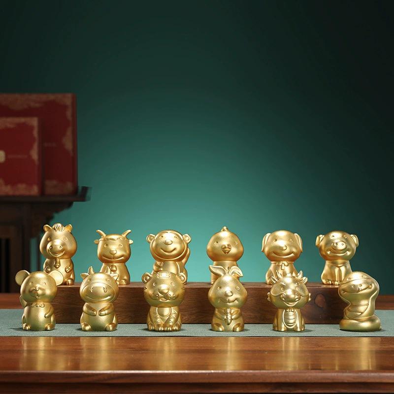 Набор латунных фигурок китайского зодиака: Крыса, Бык, Тигр, Кролик, Дракон, Змея, Лошадь, Овца, Обезьяна, Петух, Собака, Свинья — купить товар онлайн с бесплатной доставкой по всему миру!
