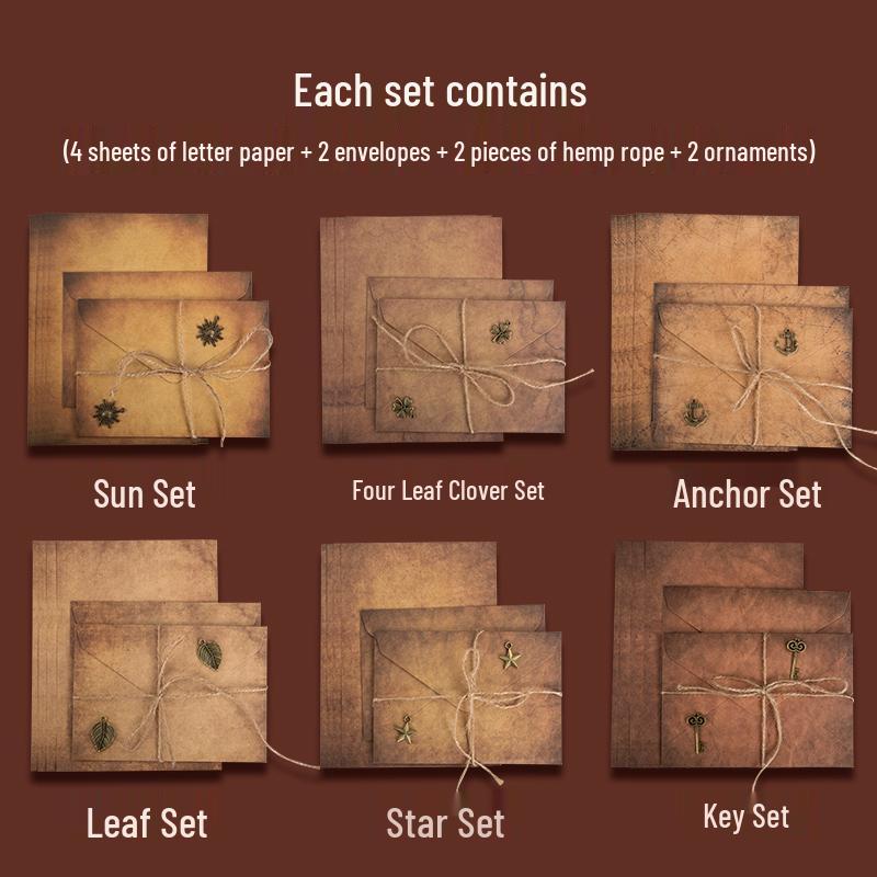 Винтажный набор для писем «Любовное письмо» с подвеской из пеньковой веревки и элегантным бланком в старинном, литературном стиле