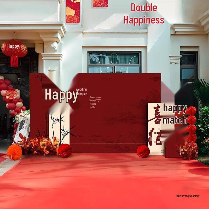 Rural Chinese Wedding Double Happiness KT Board, Outdoor Photo Backdrop for Marriage Reception