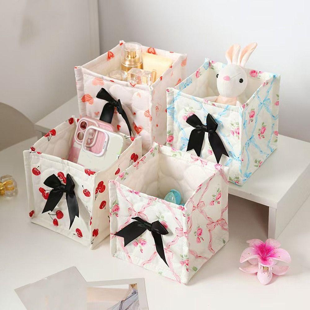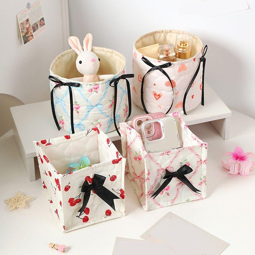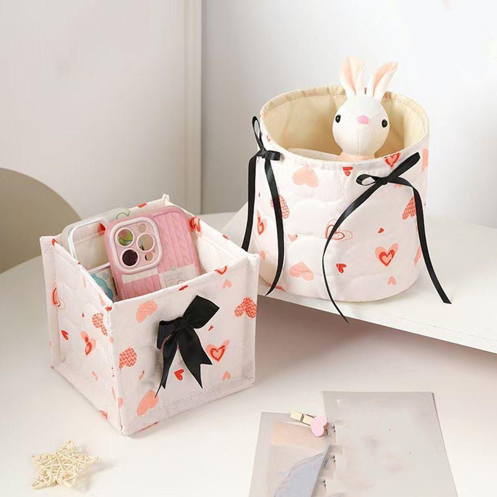 Стеганая корзина для хранения в стиле инс, милый бант, коробка для хранения косметики и закусок, студенческая
