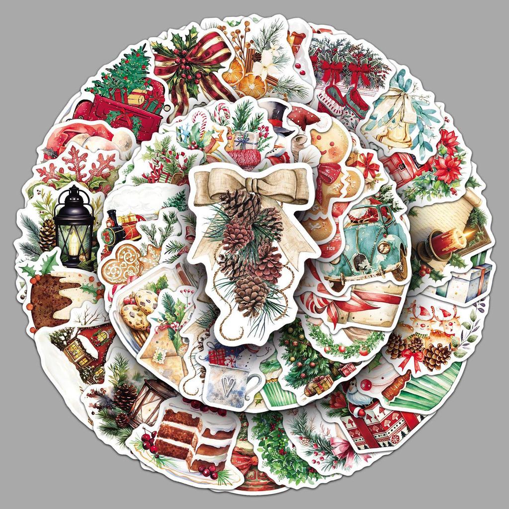 50 Ретро Водонепроницаемых Рождественских Наклеек: Праздничные украшения для журналов, блокнотов, бутылок для воды, гитар и телефонов