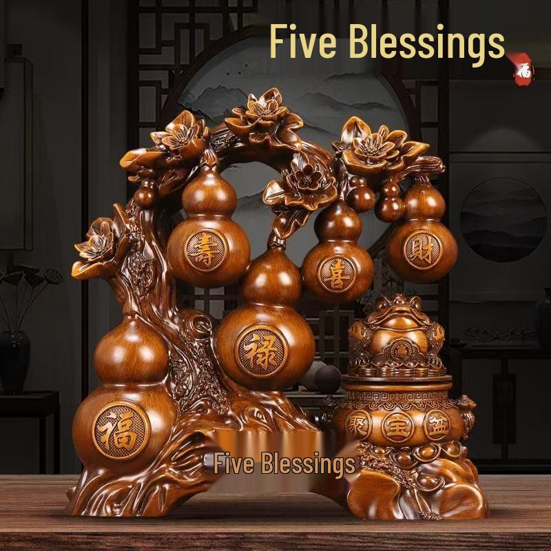Украшение тыква «Пять благословений»: Процветающий Домашний Декор, Идеально подходит для Нового Дома, Гостиной, Прихожей, Винного Шкафа или в качестве Китайского Подарка на Новоселье.