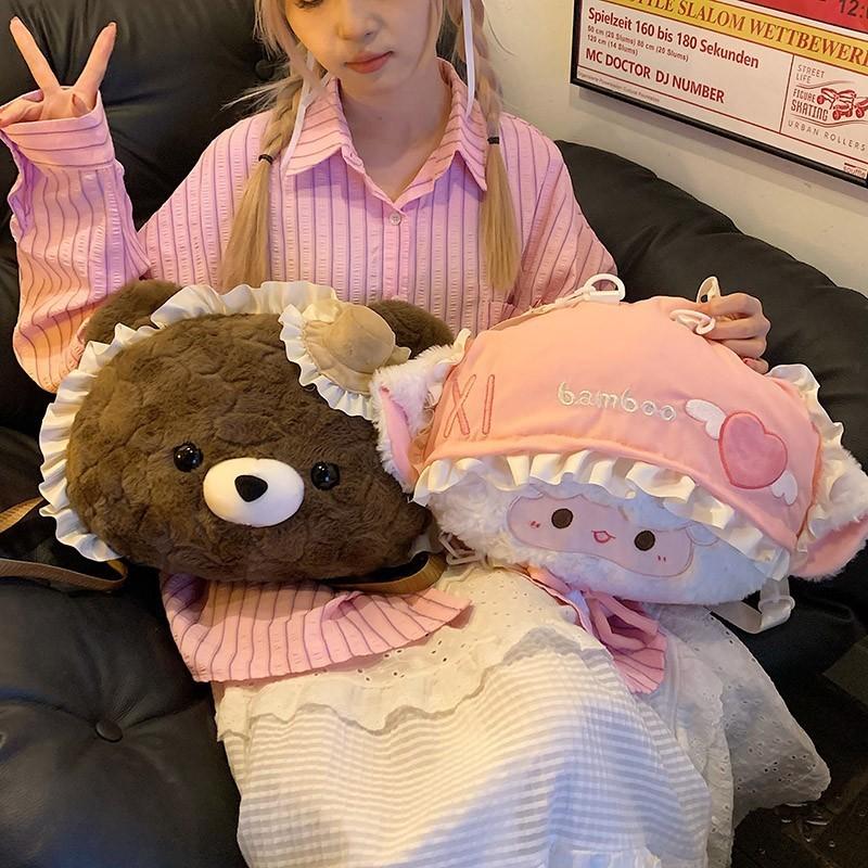 Lamb Cute Bear Cartoon Fluffy Backpack Embroidery Lightweight School Design