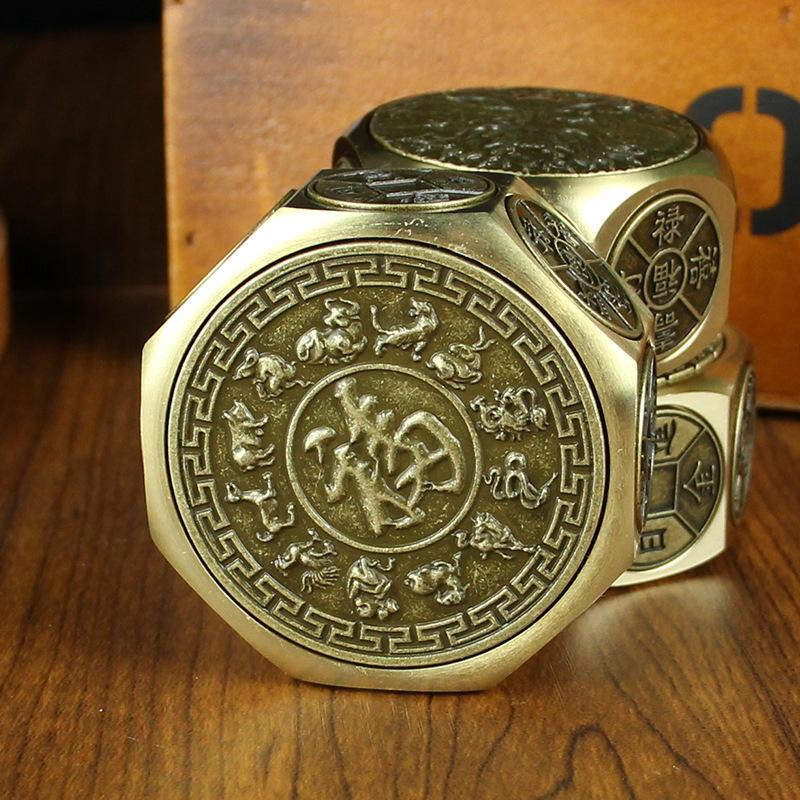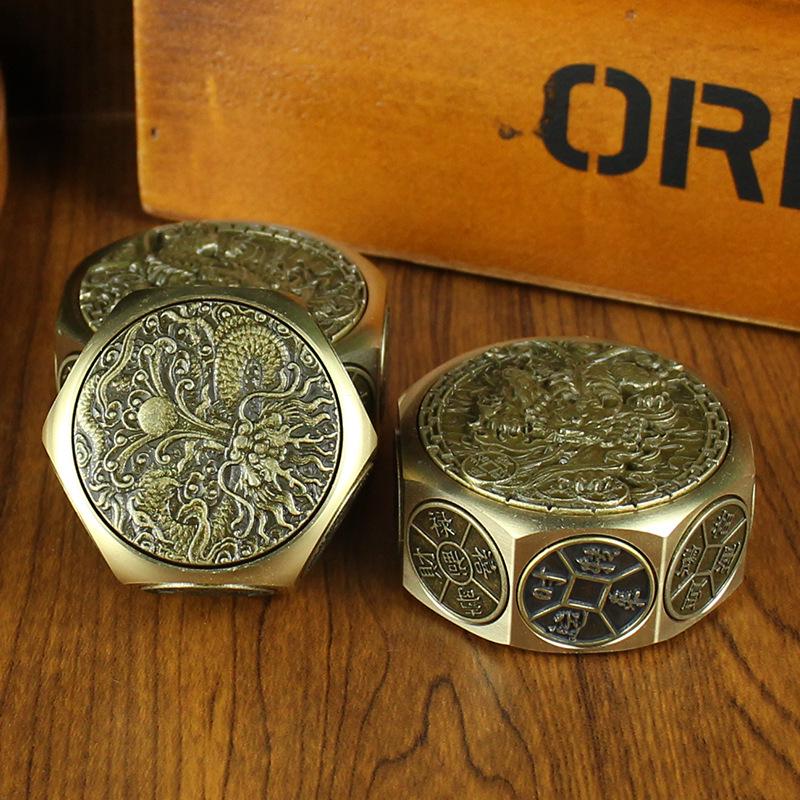 Восьмигранный кубик из латуни ручной работы «Деньги и десятигранный дракон» - Креативная резьба, Игрушка для снятия стресса премиум-класса, Издание «Год Дракона».