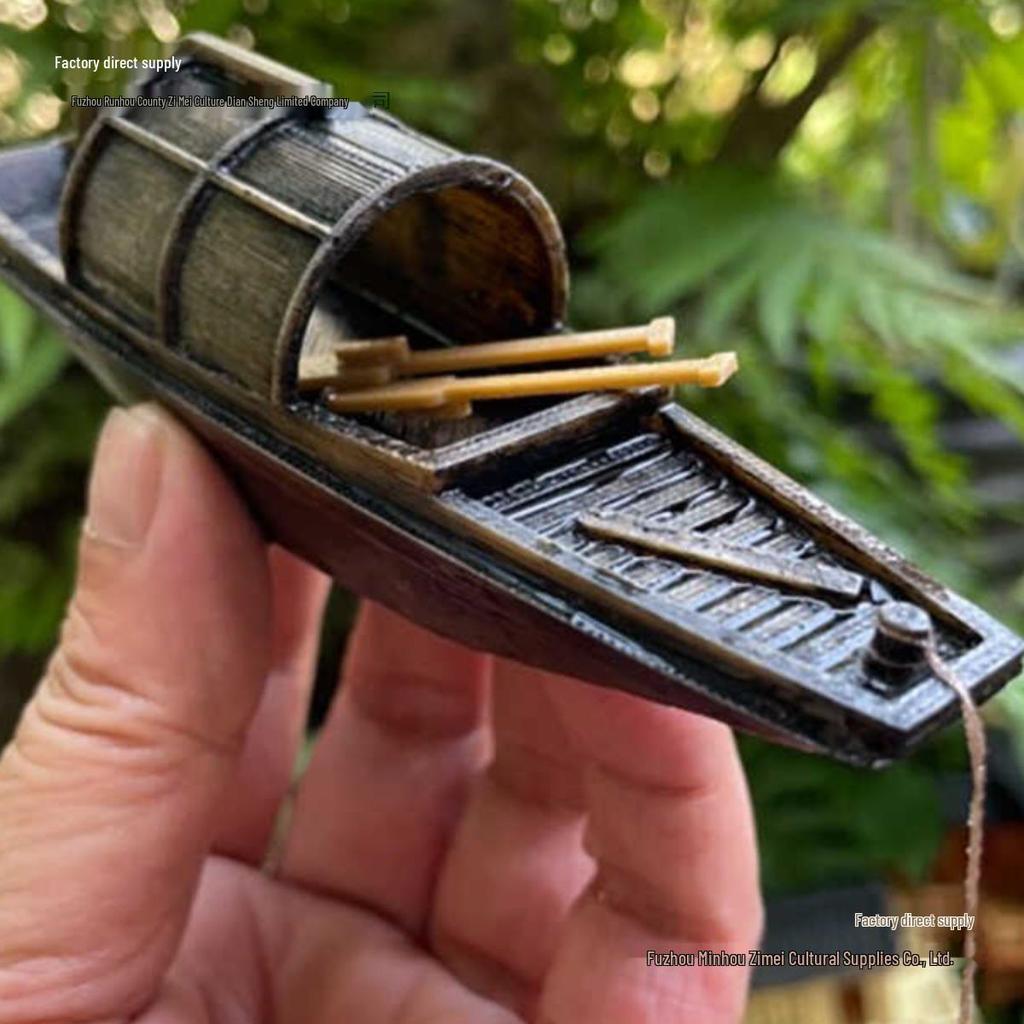 Плавучая модель китайской антикварной рыбацкой лодки: Декор для водного ландшафта на открытом воздухе и в помещении