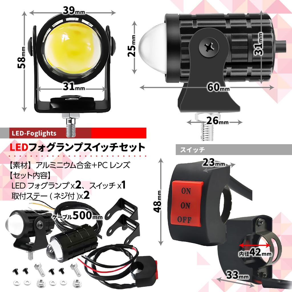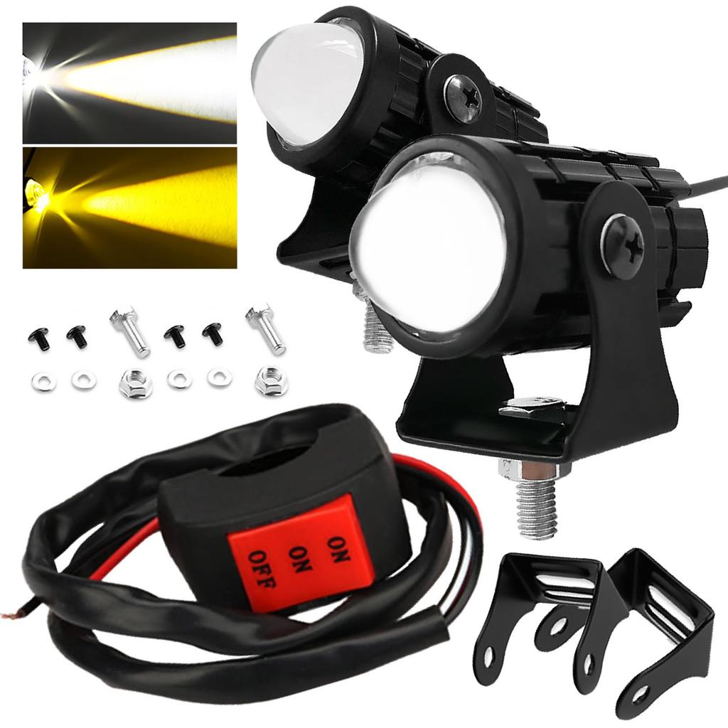 Противотуманная фара для мотоцикла PIENSE с 2 светодиодами/включенным переключателем, маленькая, водонепроницаемая, белая, желтая, переключатель дальнего/ближнего света,
