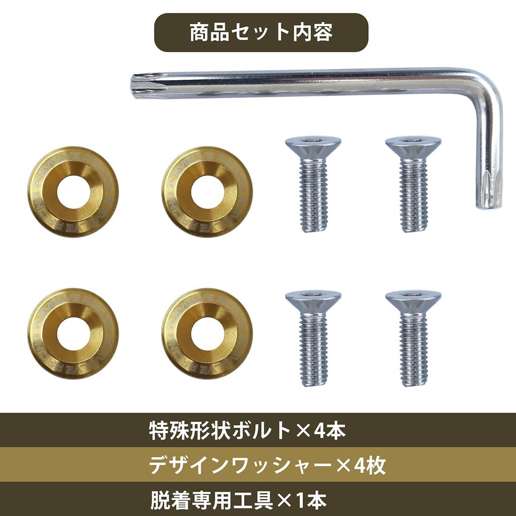 EVOLVERACING Anti-theft Bolt Set for License Plate Specific Vehicle Inspection (Gold Bolt Length 0.6 inch (15 mm)