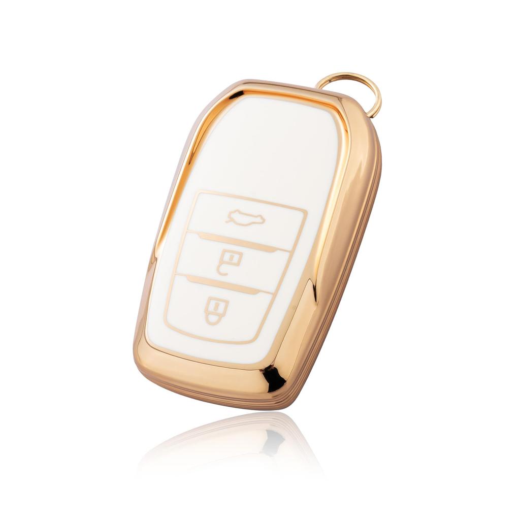 (Безопасный умный ключ) Изготовлен из ультралегкого, гибкого материала ТПУ с глянцевым покрытием, устойчивого к трению и растрескиванию, легкий и долговечный, предотвращает царапины и износ ключей вашего автомобиля, сохраняя гибкость и другие физические характеристики. Кнопки на клавишах также легко нажимаются, поэтому вы держите его в ладони холодной зимой, не чувствуя холода или скованности.. Гибкая ТПУ-защита на поверхности и углах пульта дистанционного управления надежно защищает ваш важный смарт-ключ от ударов и падений.