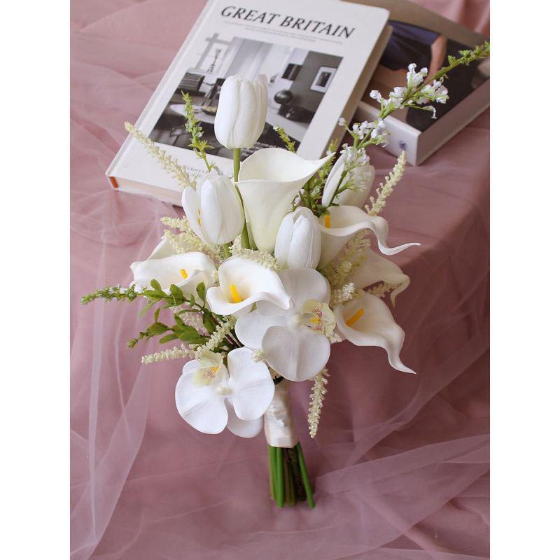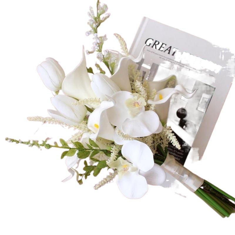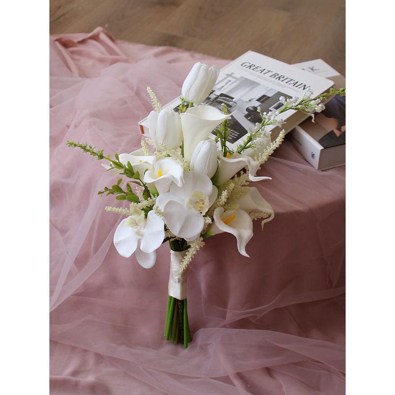 Белый свадебный букет ручной работы для фото невесты, искусственный цветочный реквизит в корейском стиле