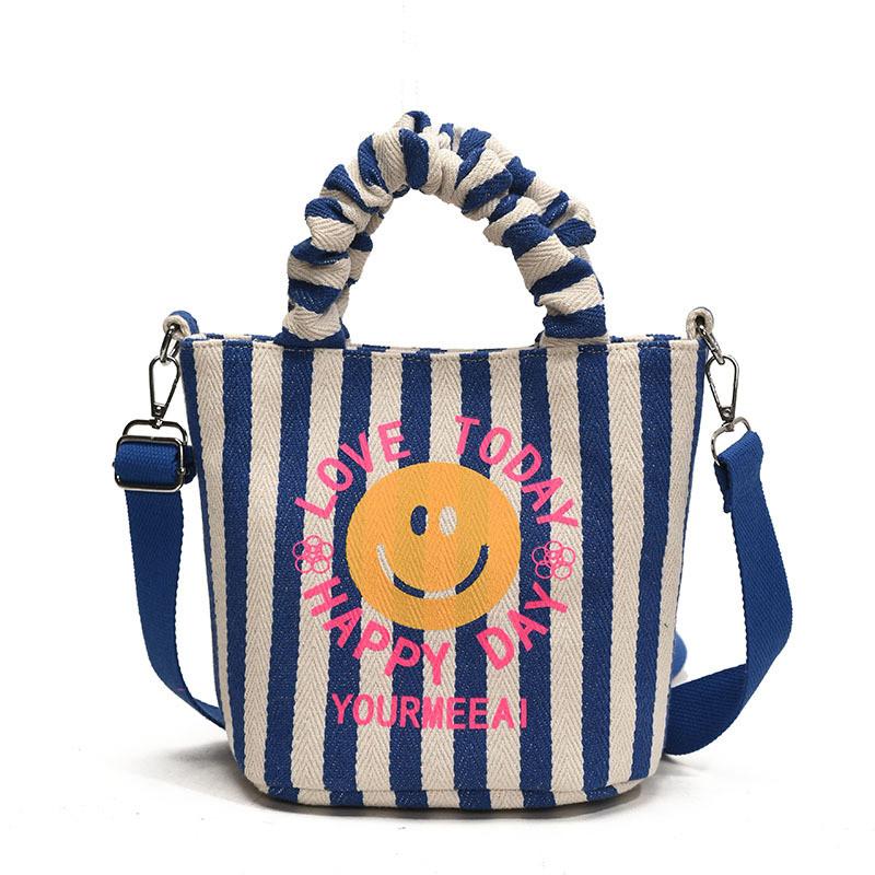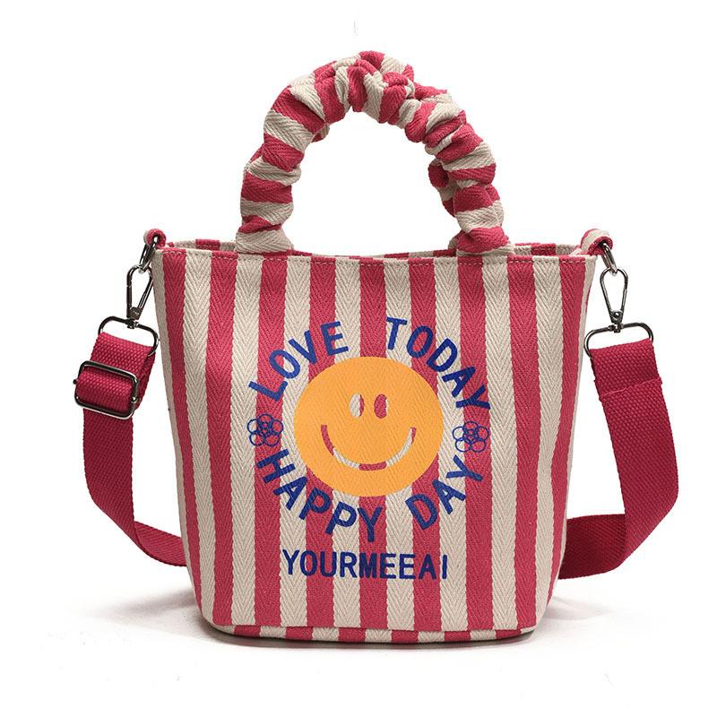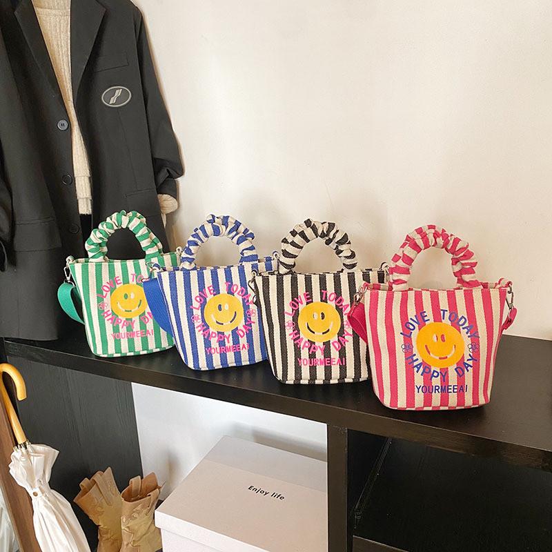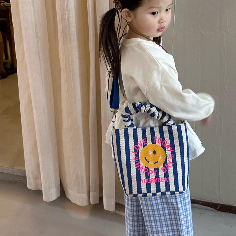 Smiley Face Cute Unisex Kids Shoulder Bag Fashionable Striped Pleated Children