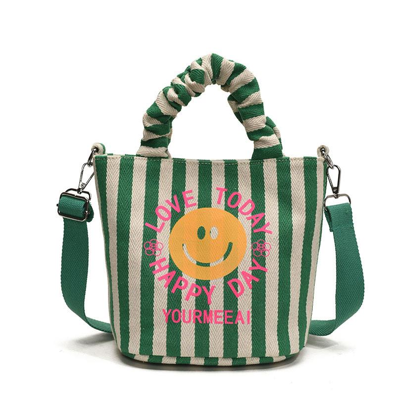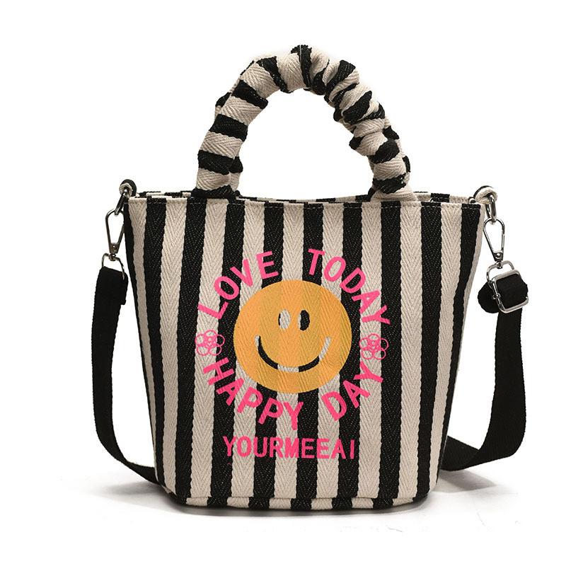Introducing the Colorful Unisex Kids Bucket Handbag, a delightful accessory that combines style, fun, and functionalityperfect for your preschooler! Designed for both boys and girls, this trendy handbag features a vibrant array of stripes and a cute smiley face motif, ensuring that it will bring a smile to any child's face. Made from durable canvas, this handbag is not only breathable and lightweight but also built to withstand the adventures of everyday play. Your little one will love carrying this bag to daycare, playdates, or family outings, making it an essential addition to their wardrobe.