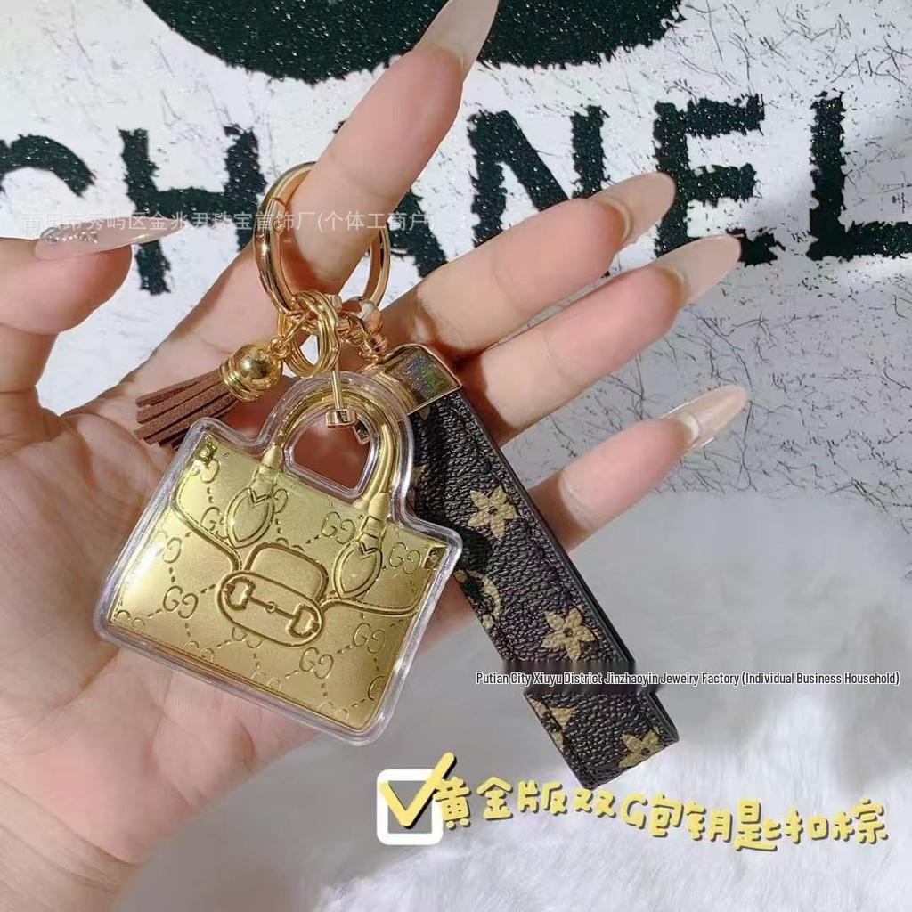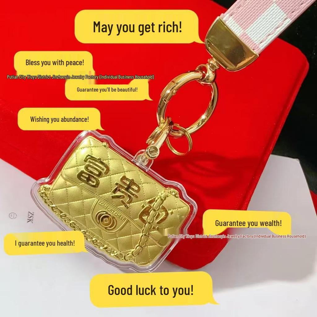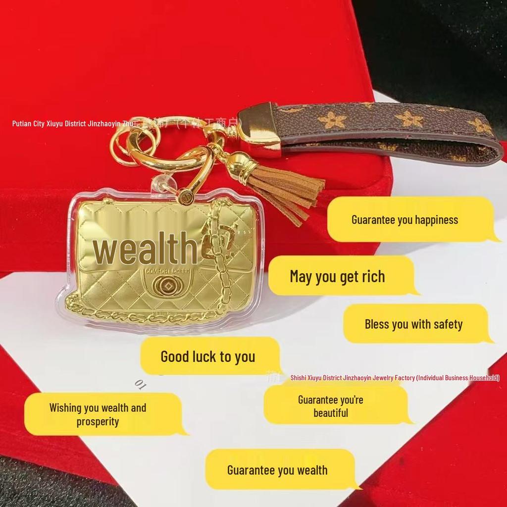Золотой брелок-подвеска в виде сумки: 20 мг Чистого Золота - Обещает Богатство, Мир и Красоту. Идеально в качестве брелка для мобильного телефона или украшения для автомобиля.