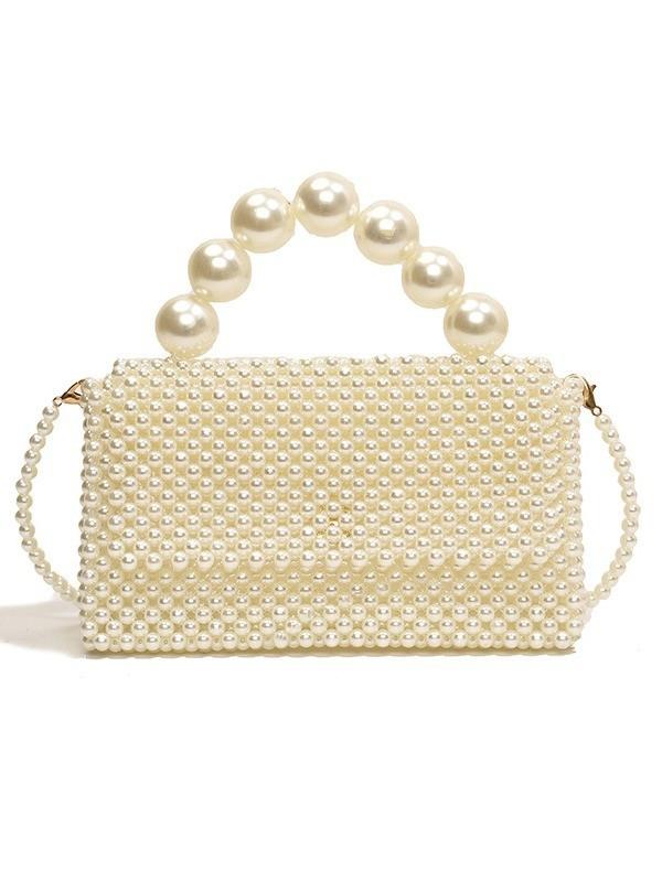 Женская плетеная вручную сумка-мини для путешествий, украшенная жемчугом, клапан на магнитной застежке