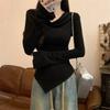 Женская сезонная базовая футболка с одним открытым плечом, однотонная, с длинными рукавами, приталенная, в стиле Spice Girl, хлопковый топ