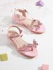 Розовые босоножки на толстом каблуке с бантом 2025 для девочек