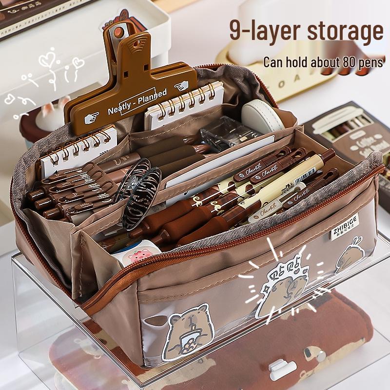 Прозрачный многослойный пенал-капибара - Большая вместимость, высококачественный органайзер для канцтоваров для детей