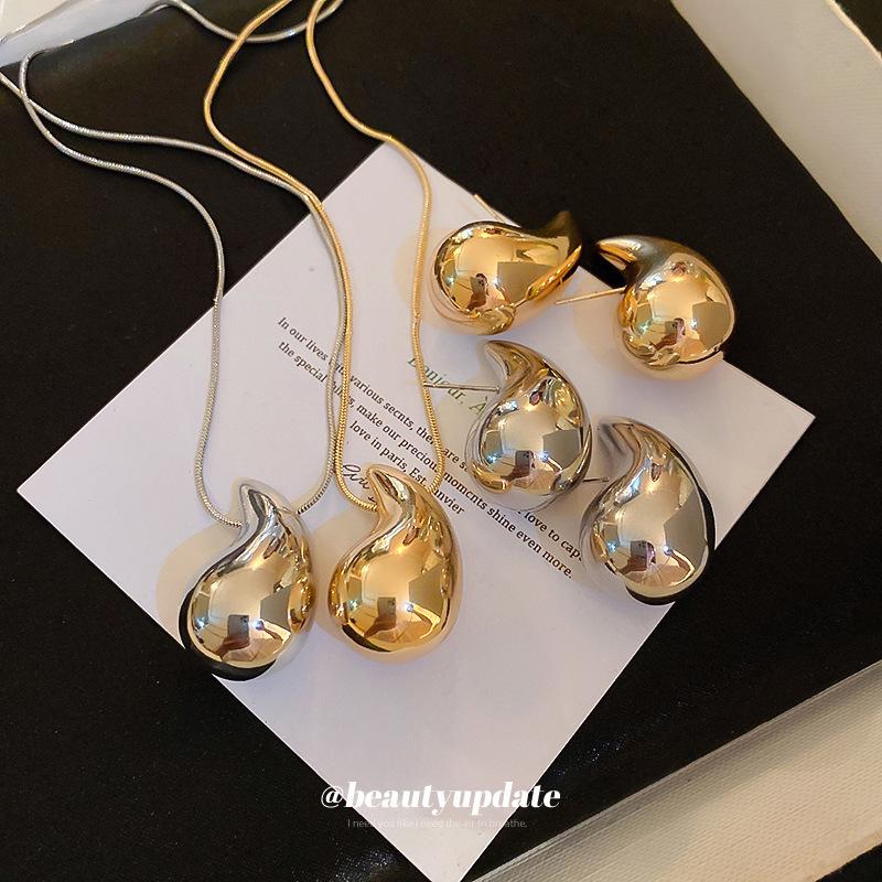 Серьги и колье 'Капля воды' из серебряной иглы - Элегантные украшения на ключицу