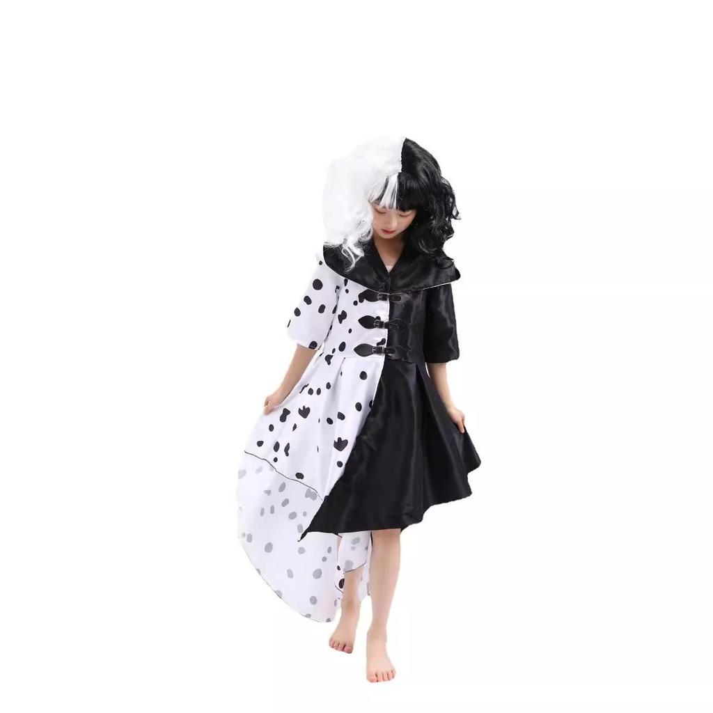 101 Далматинец Круэлла де Виль Черно-белое пятнистое платье костюм для сценического выступления