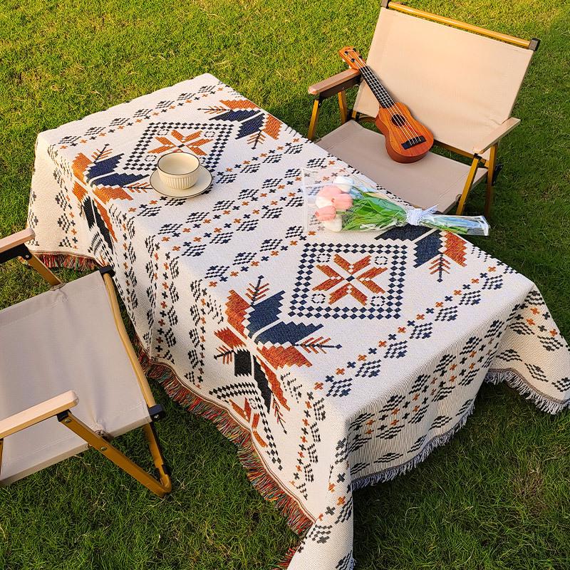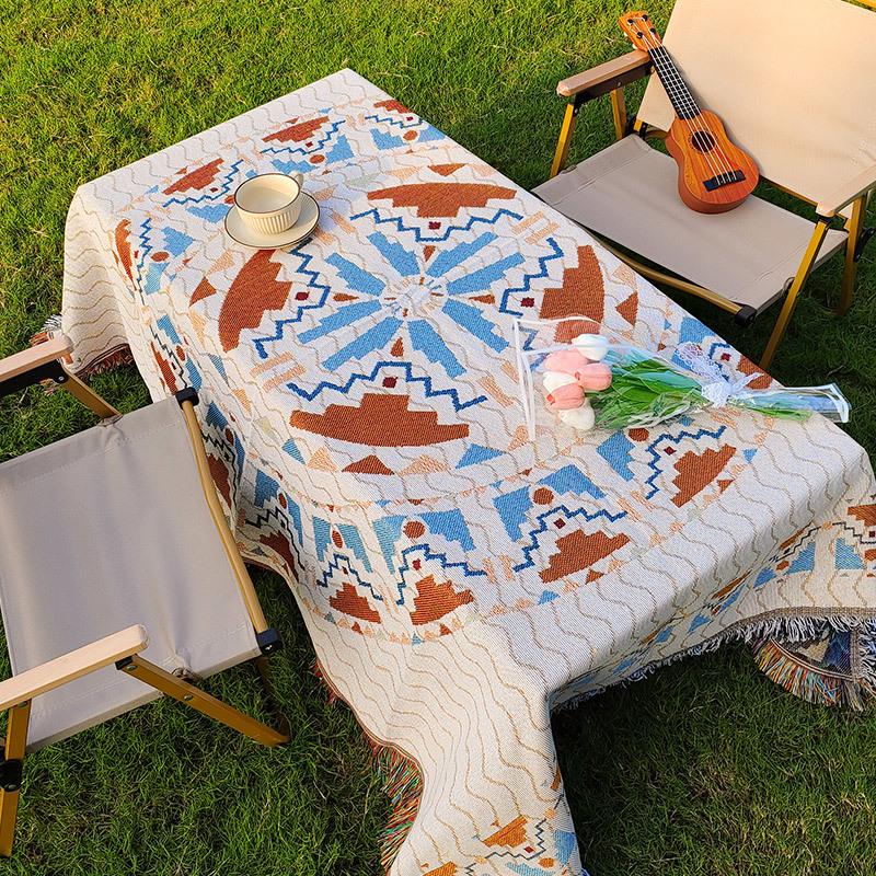 Этнический стиль Уличная скатерть и одеяло для пикника - Влагостойкий коврик для кемпинга и чехол для журнального столика