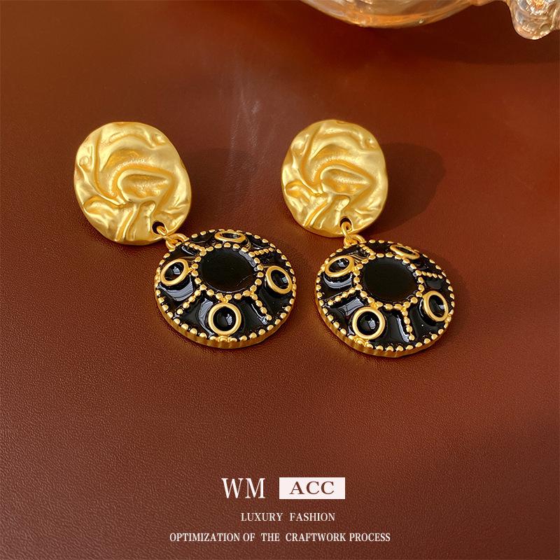Винтажные овальные серьги-каффы C-образной формы с эффектом состаренности и капающим маслом для женщин - Ретро серьги в стиле легкой роскоши