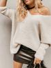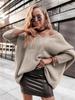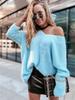 Новый свободный свитер-летучая мышь конфетного цвета с V-образным вырезом и открытыми плечами, вязаный пуловер, повседневный женский свитер