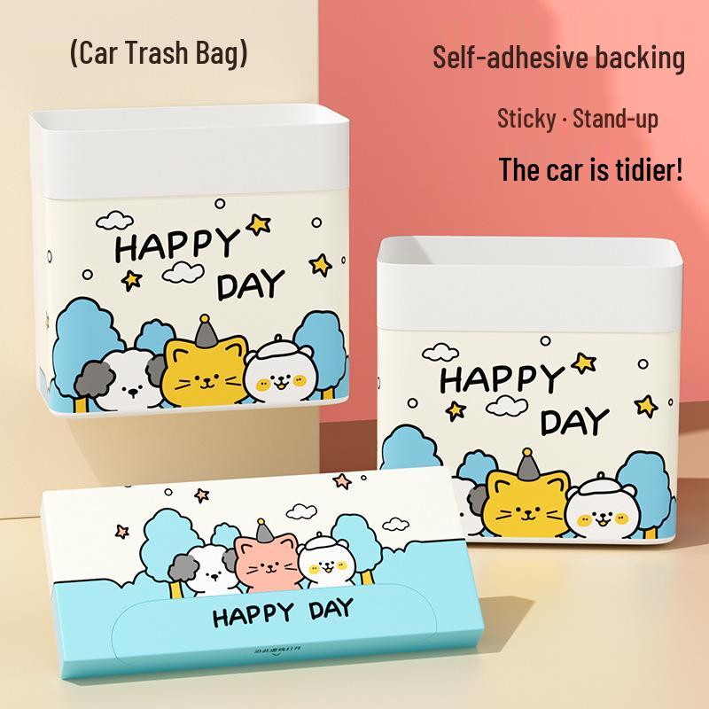 Portable Car Trash Can: Dual-Use Self-Standing, Thickened Design, Pasteable, Suitable for Desktop and Car Use with Built-in Cleaning Bag Holder.