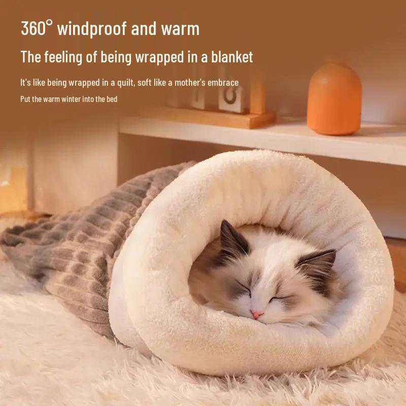Кошачий зимний теплый спальный мешок: Уютная кровать-безопасность на все сезоны с дизайном «половинка»