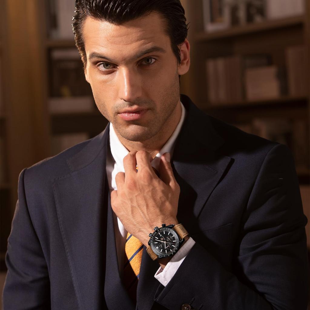 BY BENYAR Хронограф Аналоговый 30М Водостойкий Кожаный Ремешок Кварцевый Подарок для Коричневых или Черных Мужских Часов, Устойчивый, Простой, Стильный, Популярный, Формальный,