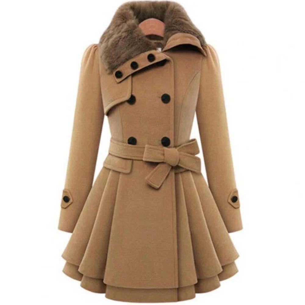 Женская куртка-ветровка теплая плюшевая толстая одежда двубортная с поясом осенне-зимнее приталенное пальто с лацканами
