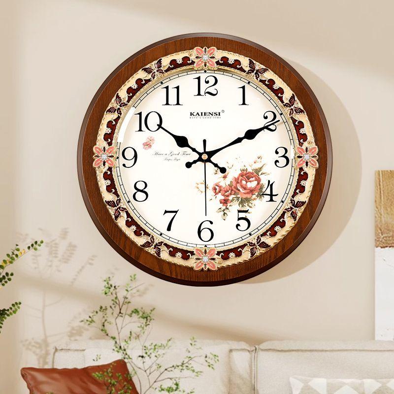 Ретро настенные часы из массива дерева, модные настенные часы для гостиной, круглые бесшумные настенные часы высокого класса — купить товар онлайн с бесплатной доставкой по всему миру!