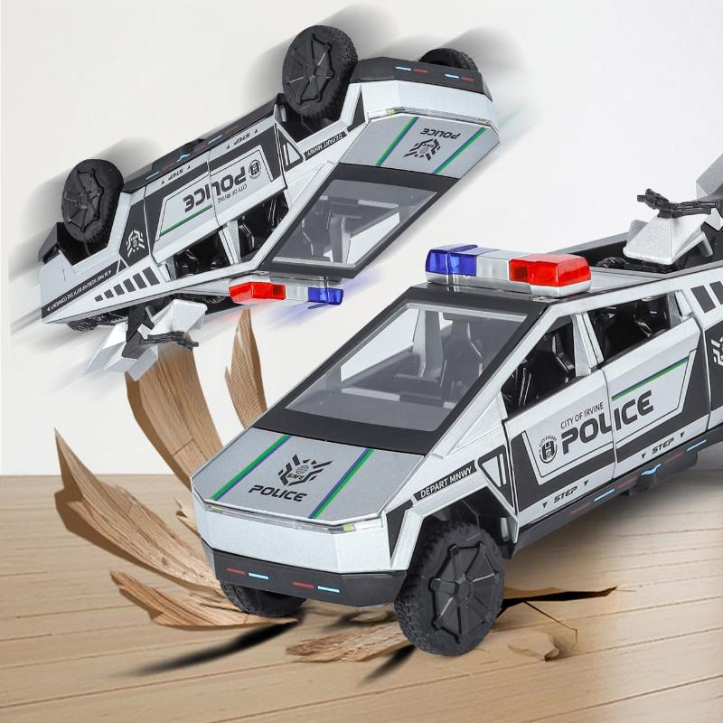 1:32 Кибертрак Полицейская машина Пикап Сплав Модель автомобиля Литая игрушечная машина Звук Свет Симуляция Для детей Рождественский подарок Игрушки