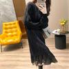 Вязаное платье с кружевной отделкой с длинным рукавом для женщин, осеннее, в корейском стиле, однотонный цветочный кардиган-свитер