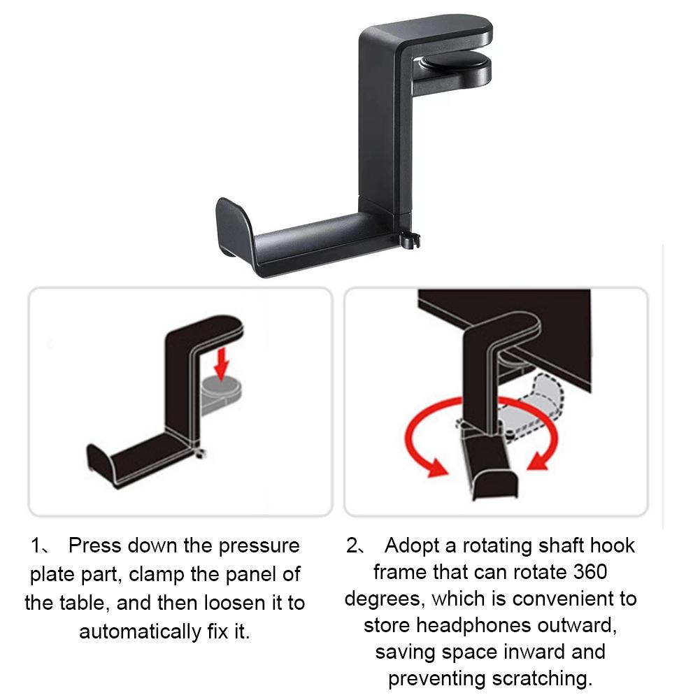 Headphone Stand PC Gaming Headset Stand Under Desk 360 Degree Rotating Headphone Hook Clamp-On Headphone Holder