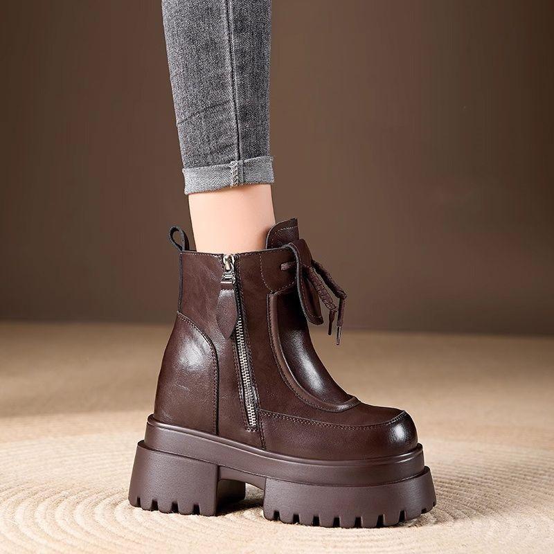 Модные кожаные ботильоны на платформе с квадратным носком и массивным каблуком для женщин Мода 2025 Y2k Новинка Осень Зима Женские короткие туфли