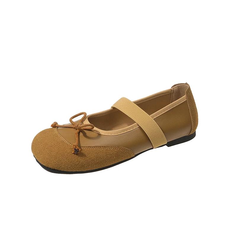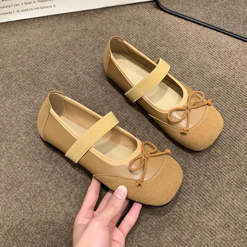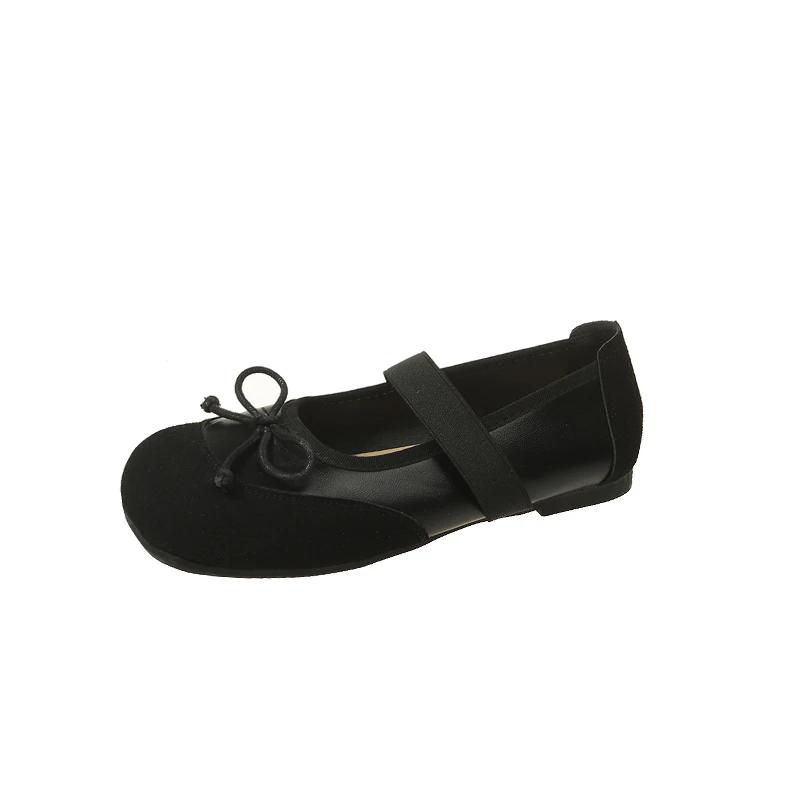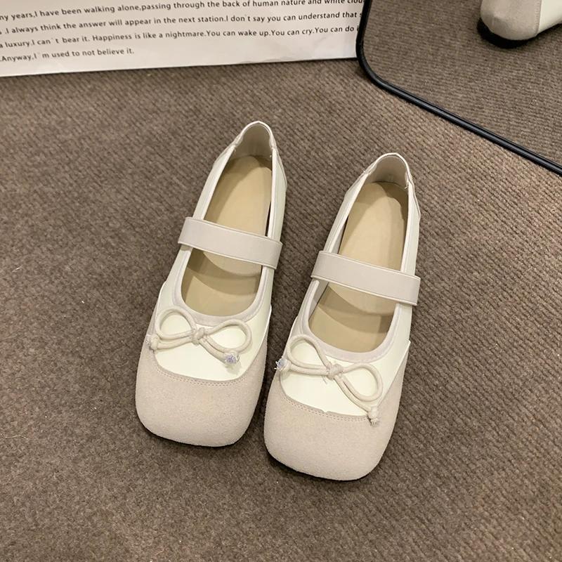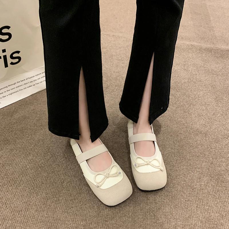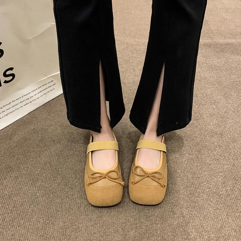 Женские туфли на плоской подошве с бантом, новые осенние туфли с квадратным носком, неглубоким воротом, пряжкой в одну линию, мягкой подошвой, нескользящие одинарные туфли