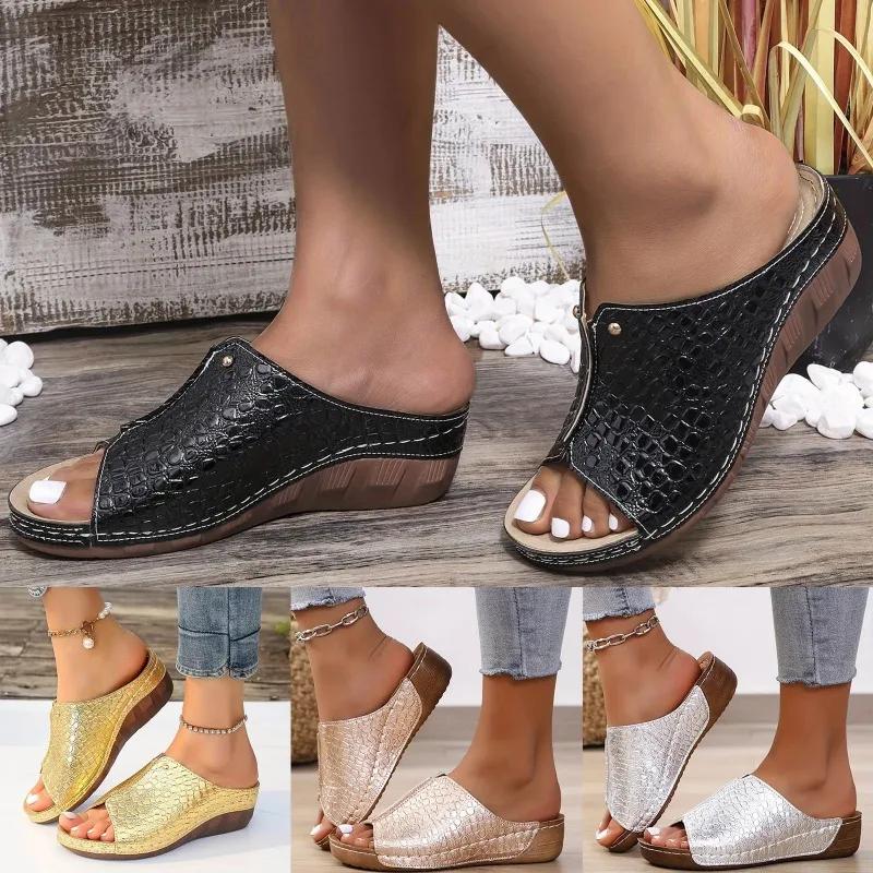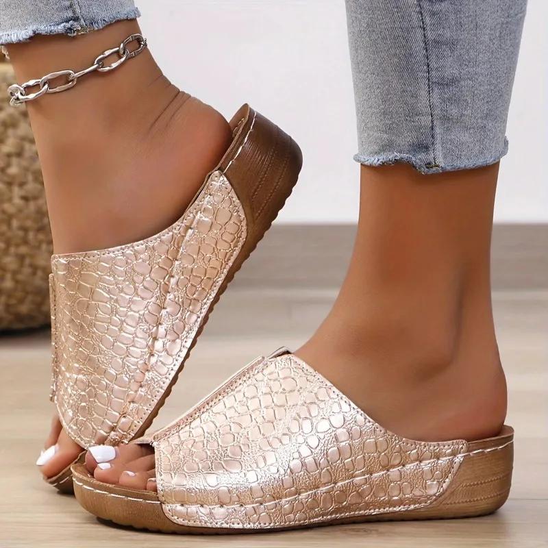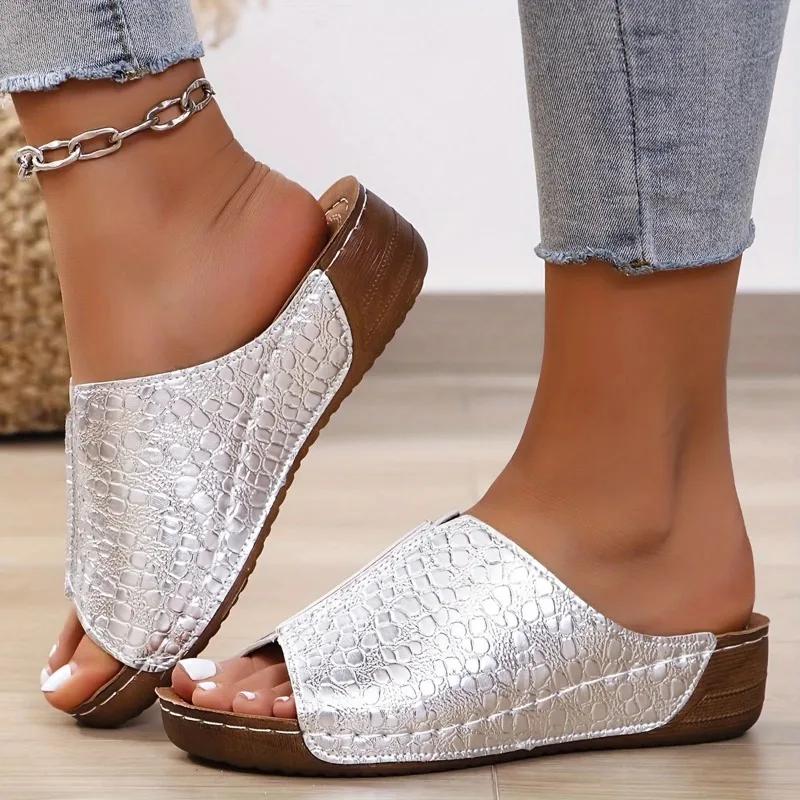 Женские повседневные тапочки с одной повязкой, однотонные сандалии из змеиной кожи с открытым носком и рыбьим ртом, летняя обувь для отдыха на открытом воздухе